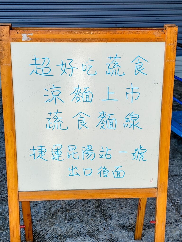 捷運昆陽站 1 號出口有家很棒的《超好吃蔬食麵線》,專賣素食麵線和素食涼麵,不僅價位便宜,而且麵線的料非常多,而且老闆娘超親切的呢!而這家素食涼麵和麵線,在星期三時還會賣油飯,現在就讓大家跟著海芋的腳步 Go Go Go 吧!