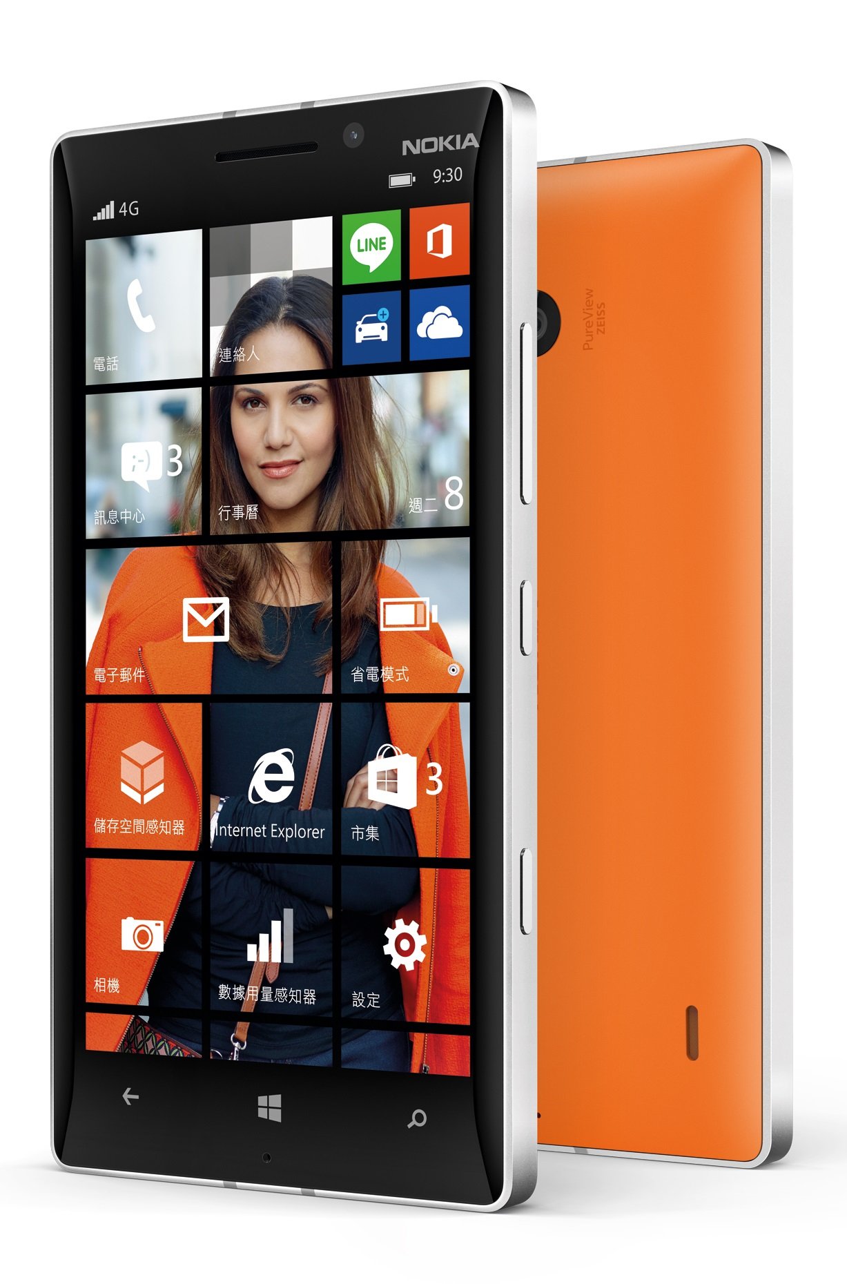 Lumia 930美型設計結合金屬質感與鮮豔色彩,搭載各種獨家的應用程式及服務,讓您在Windows Phone、PC、平板與Xbox間享受同步照片、影片和文件的一致性的體驗。